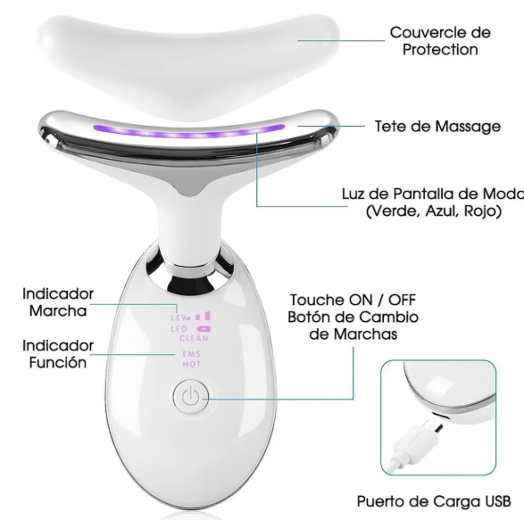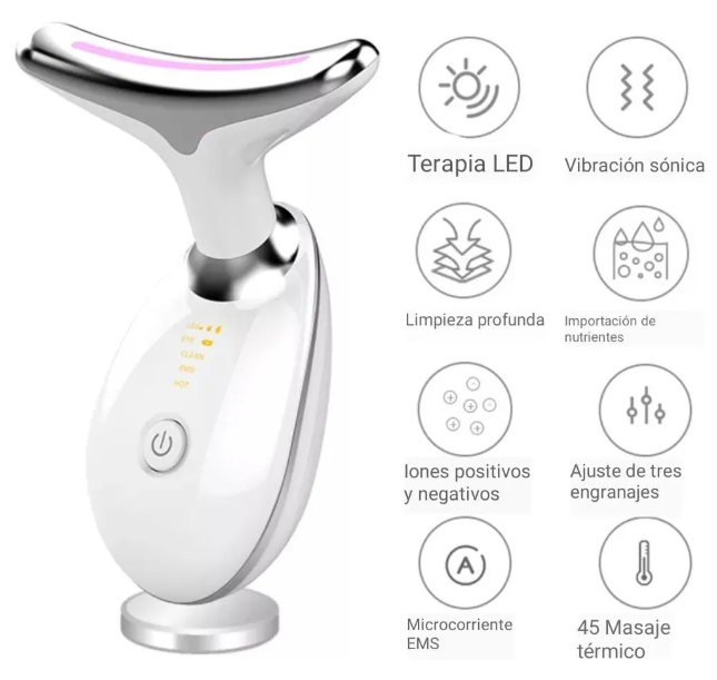 • 💡 Tipo: masajeador facial y de cuello con luz LED.